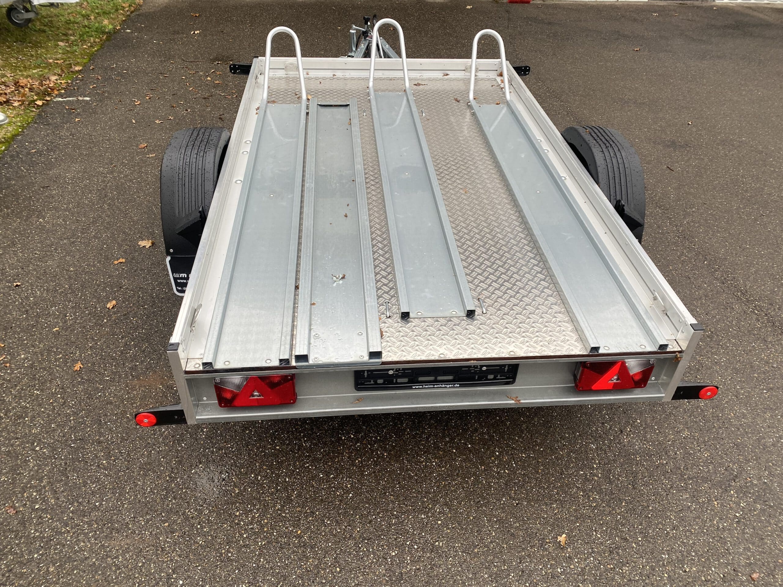 Motorradanhänger mit 1.000kg, drei Schienen montiert, 100km/h Zulassung und Alu Boden.